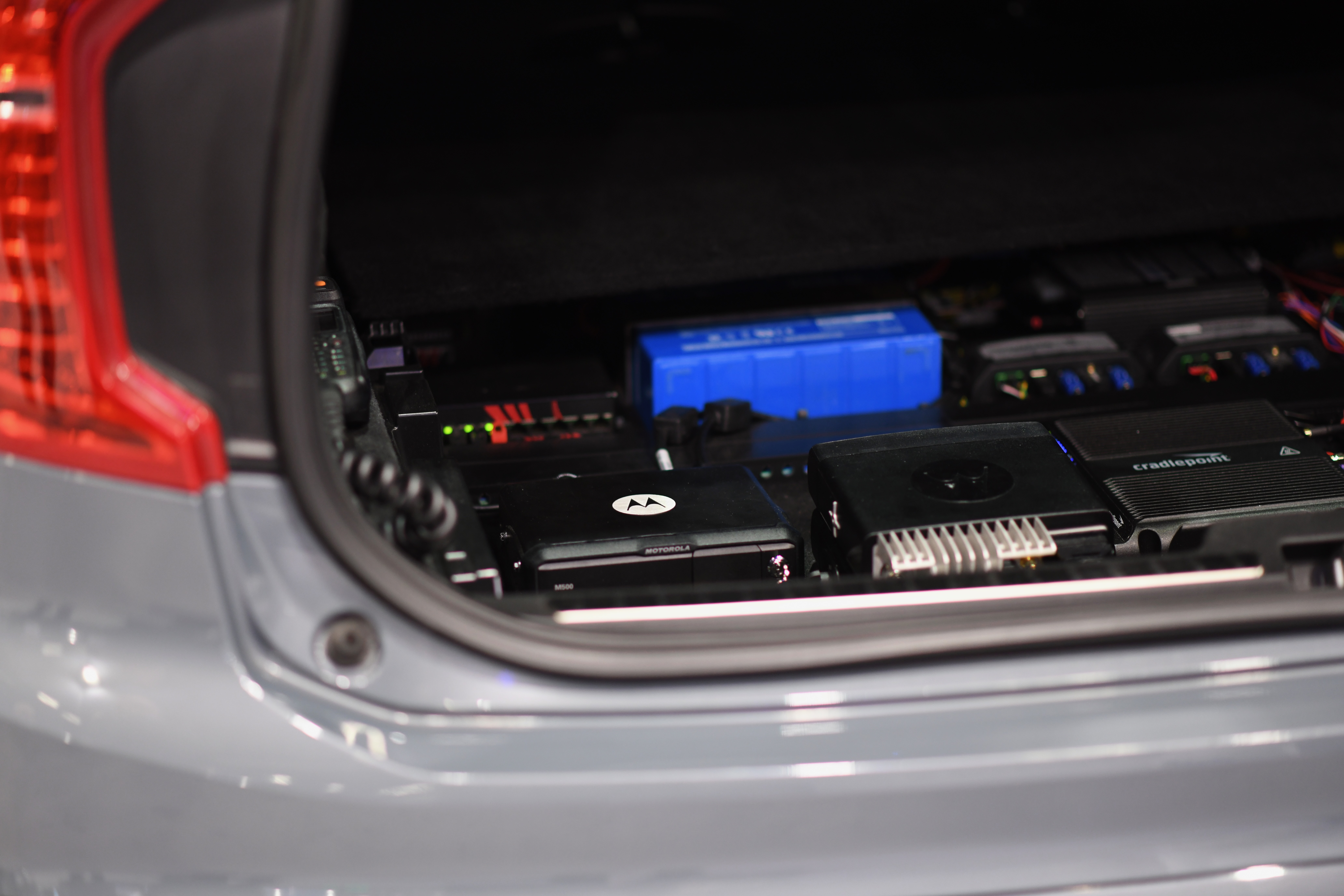 • MISPER scenario – when deployment messages are received in the vehicle through Carplay/PSCore, blue lights activate the M500, CAD updates are conducted and CCTV (Avigilon) can be viewed in-vehicle
